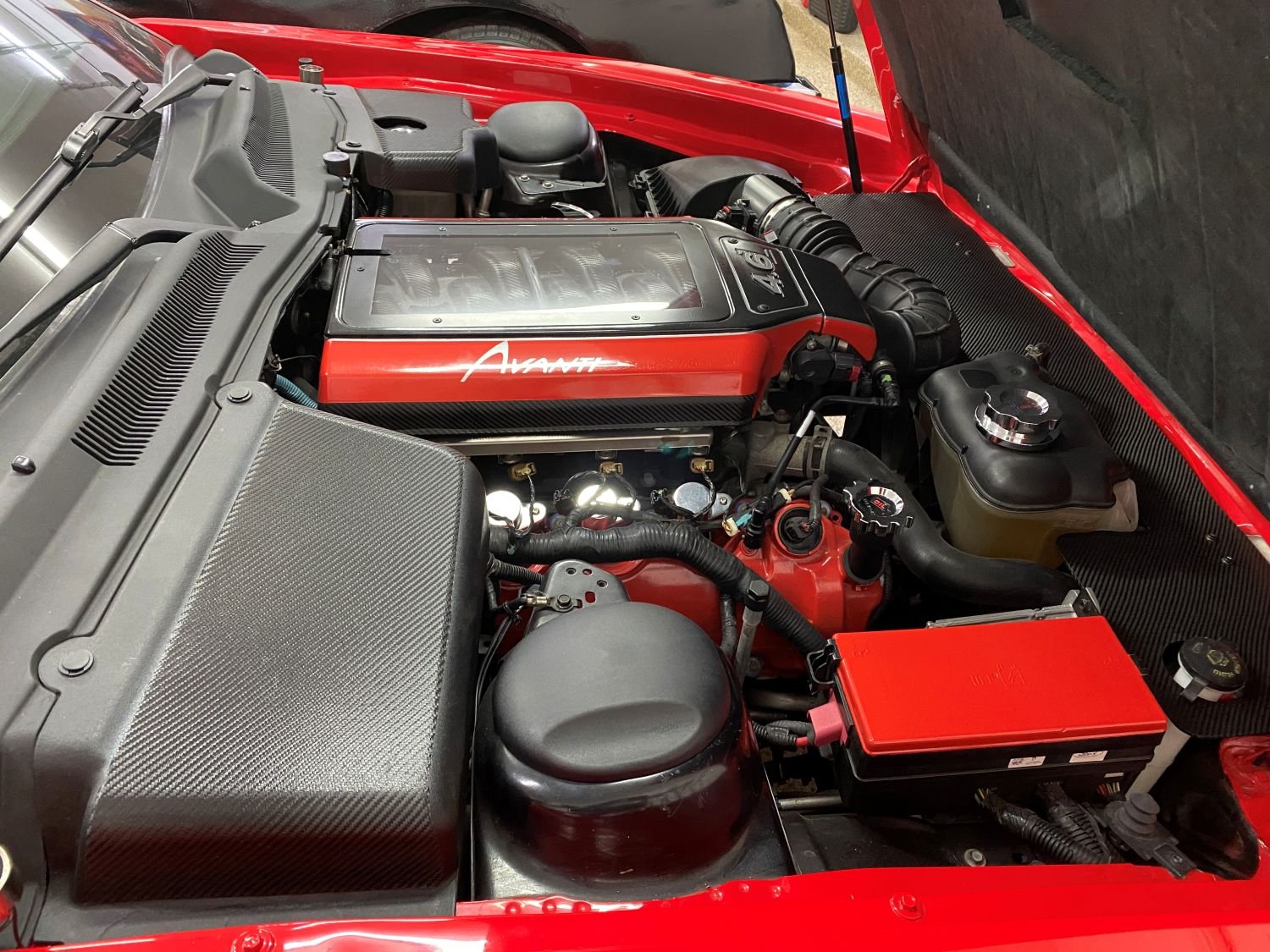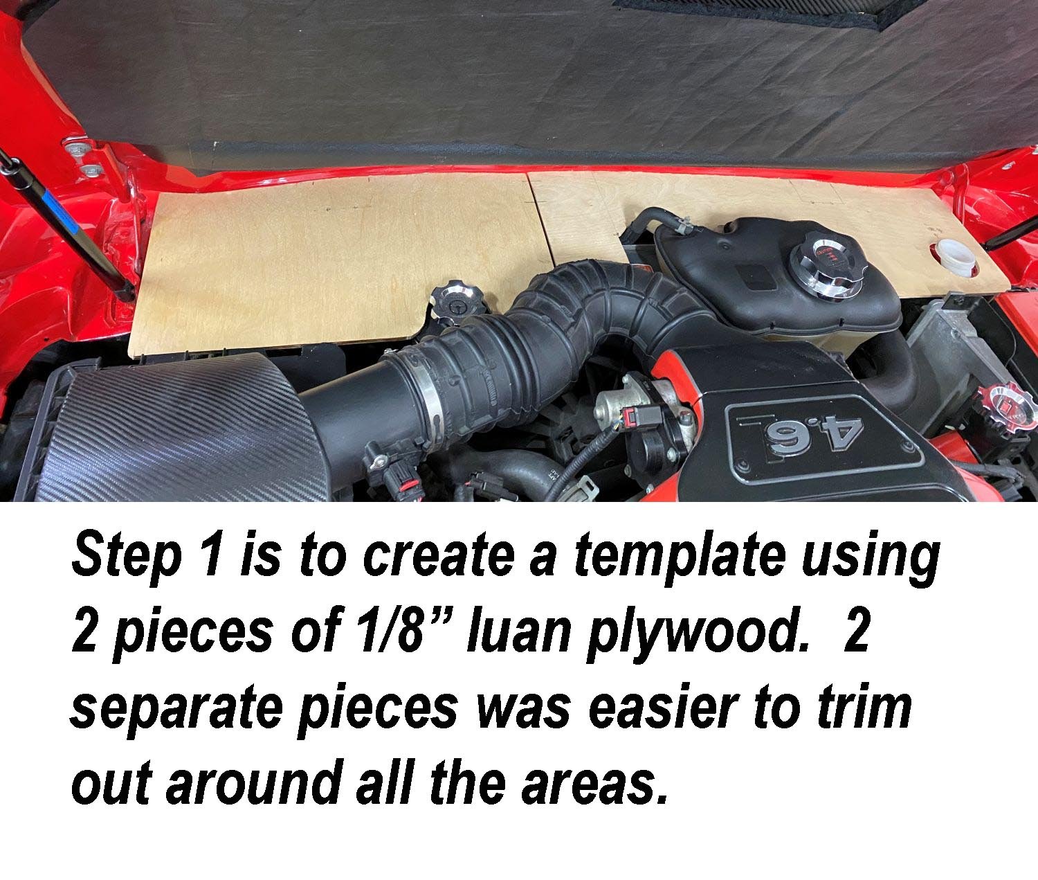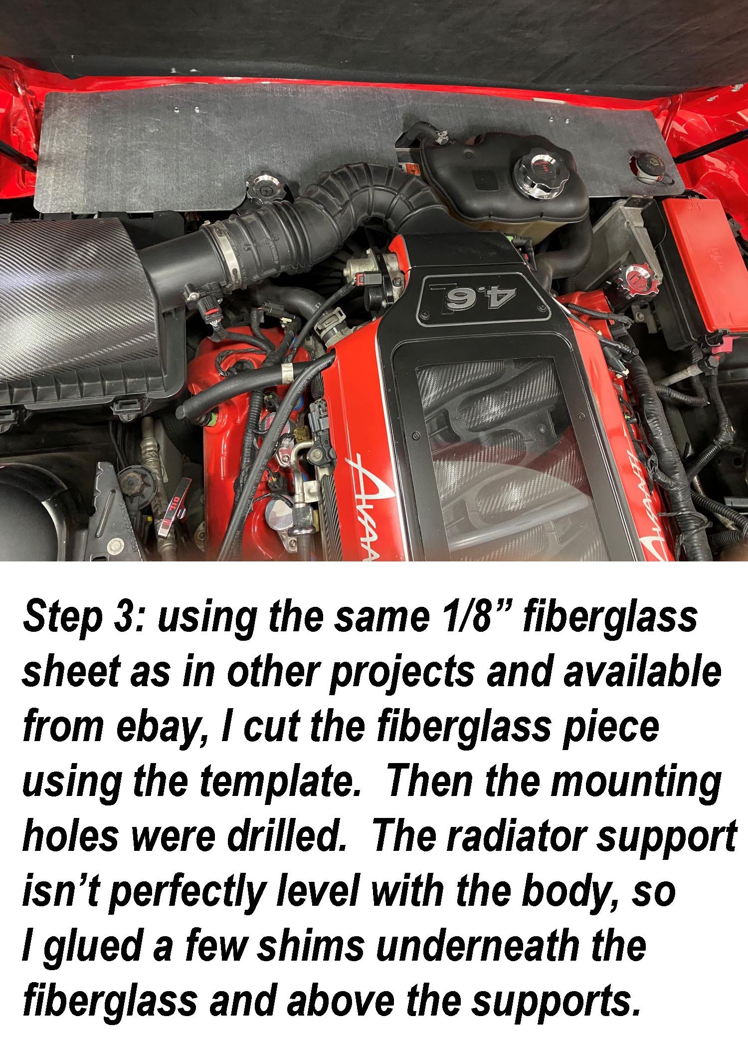 2. With the 2026 AOAI meet coming up in just a couple of months, I knew it was time to do one last engine compartment upgrade to our 2006 Avanti GT before we take it to Palm Springs. I’ve done a lot of appearance work under the hood yet there was one area around the top of the radiator that just didn’t look finished and that needed to be corrected. After opening and closing the hood a dozen times, I knew that I wanted a waterproof panel that was strong, that wouldn’t show in the front hood edge to front body nose gap when opened or closed. It also couldn’t go past the hood struts either. I wanted it to wrap around the individual parts mounted in the engine compartment, while not rubbing up against any part mounted to the engine. After measuring for the basic size, I cut two 12” x 22” pieces of 1/4” Luan plywood to create templates since I knew there would be several hours trimming, test fitting until everything looked right. Wanting them to be uniform in shape when joined together and being able to remove it if needed was another consideration. The Avanti front nose cap in front of the radiator has a lot of curves up and down, left and right that affected how level the piece would sit so test fitting and trimming was mandatory. And of course, the finished piece had to look good. While I was working on the final template layout, I order a sheet of 12” x 48”, 1/8” thick, epoxy based marine fiberglass off of eBay. The seller is a boat company who sells 1/8” – 1/2” thick panels cut to the buyers’ specs who I’ve used several times for flat panels. Here are a few photos of the process and the results.