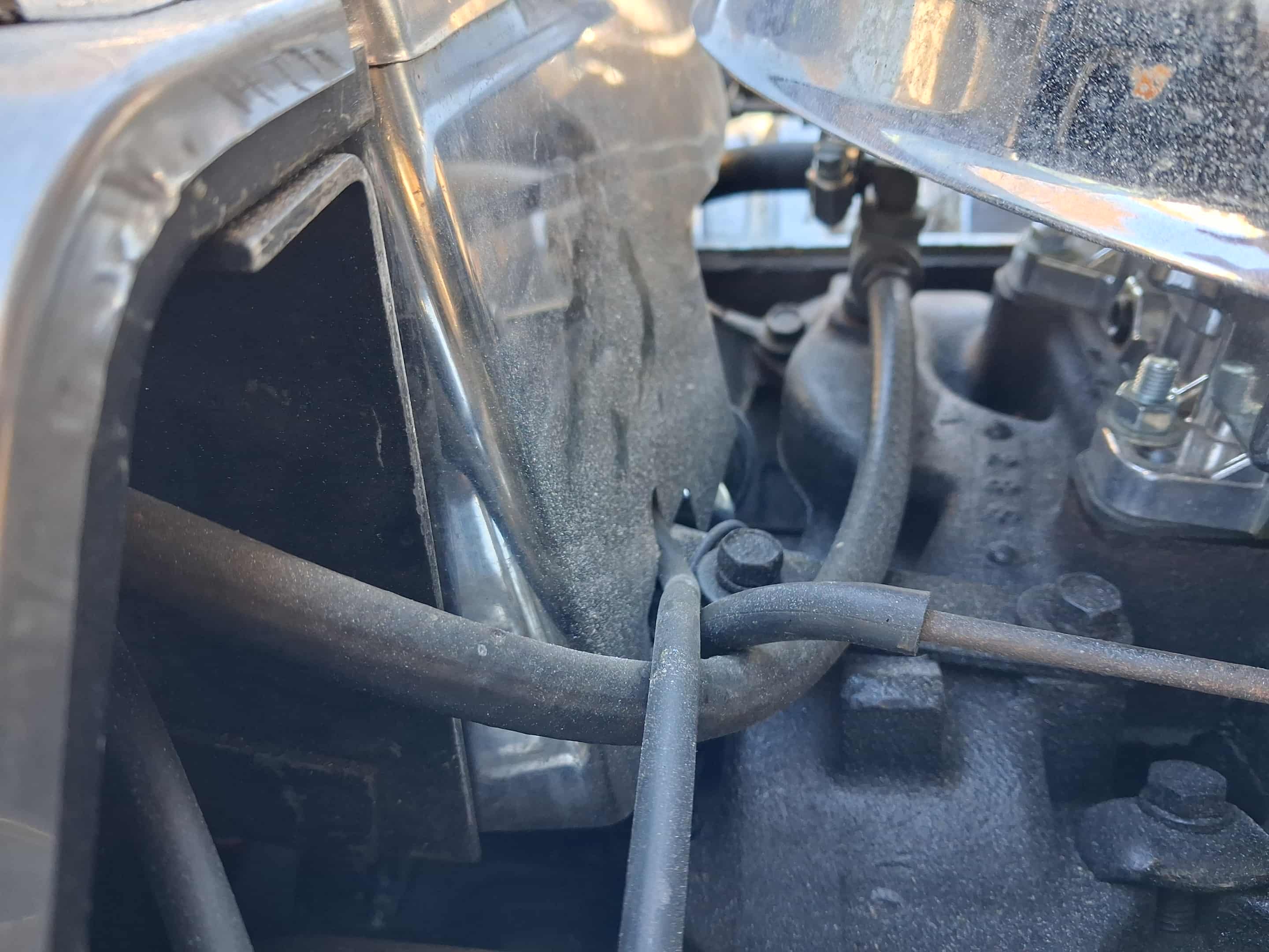 Yesterday I took my '63 around the block and the brakes were alarmingly bad, all the effort I could muster would barely stop the car (it has a Turner front disc kit with a dual master added earlier this year). I assumed I needed a new booster, but now am not so sure. The pedal sinks as normal when starting the car and it feels like it's getting vacuum, but not enough. Was wondering if anyone knows where this hose leads, as I'm thinking it may be the source of a leak. Maybe the dash vacuum gauge? Everything in the engine compartment looks OK. Anyone ever had a booster that went out, but not completely? I was under the impression it was all or nothing.