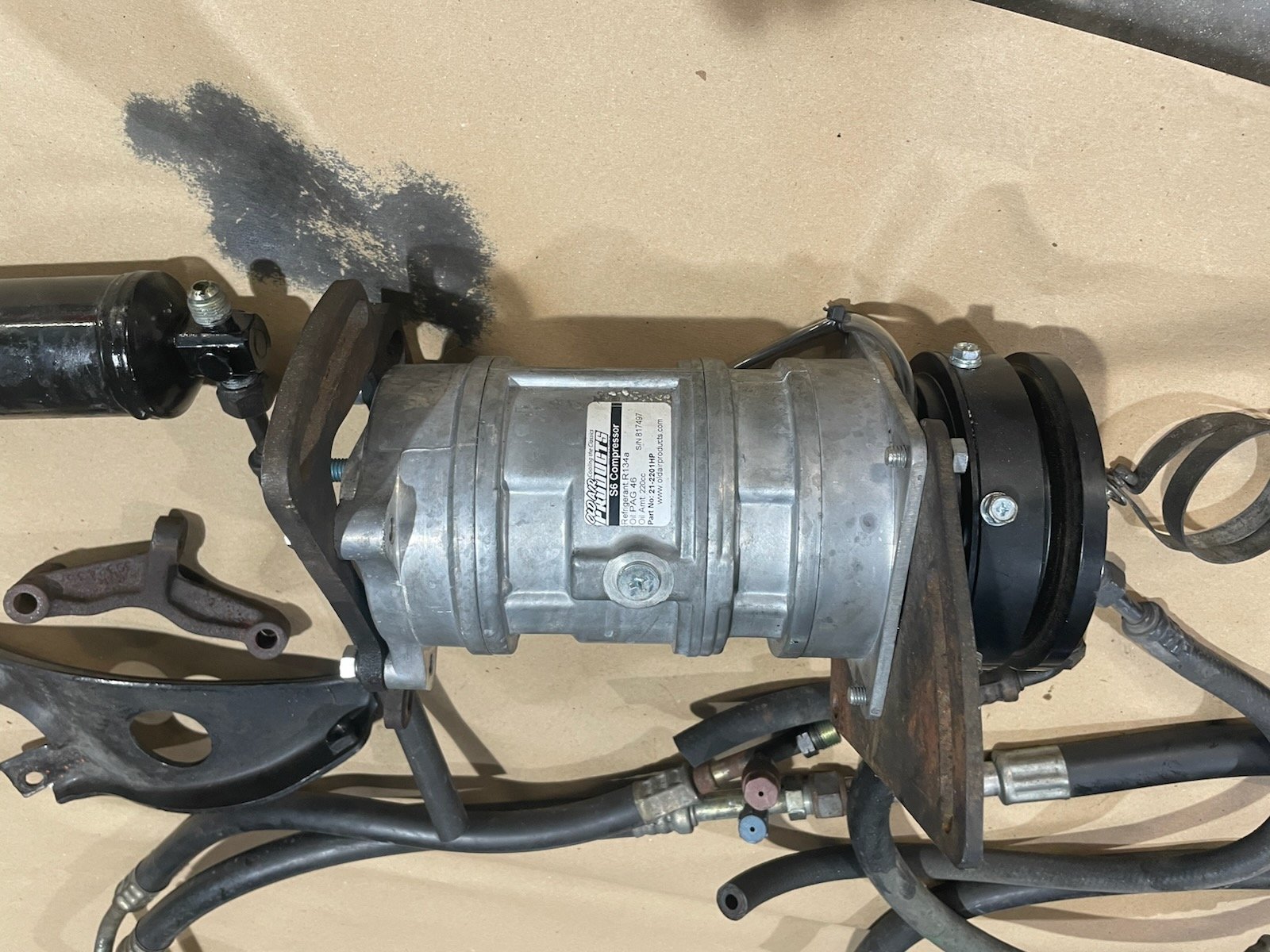 FOR SALE: RQB3263/81/305 ... I RECENTLY REMOVED THE A/C SYSTEM (EXCEPT THE EVAPORATOR) AND AM OFFERING IT FOR SALE...CONTAINS ALL PICTURED PARTS ....HOSES CUT TO FACILITATE REMOVAL... ALUMINUM A-6 COMPRESSOR 2 YRS OLD AND ONLY A COUPLE HRS RUNNING TIME ... SYSTEM OPERATING NORMAL WHEN REMOVED... REMOVED TO FACILITATE OTHER MAINTENANCE ... LOCAL PICK UP IN MELROSE, FLORIDA OR CALL BILL WITH IDEAS..... $1400.00 SPENT 2 YRS AGO ON COMPRESSOR INSTALL... $700.00 NOW FOR EVERYTHING PICTURED .....THAT WOULD INCLUDE THE EVAPORATOR BUT YOU NEED TO REMOVE IT .....CALL BILL CELL 386-466-6434
