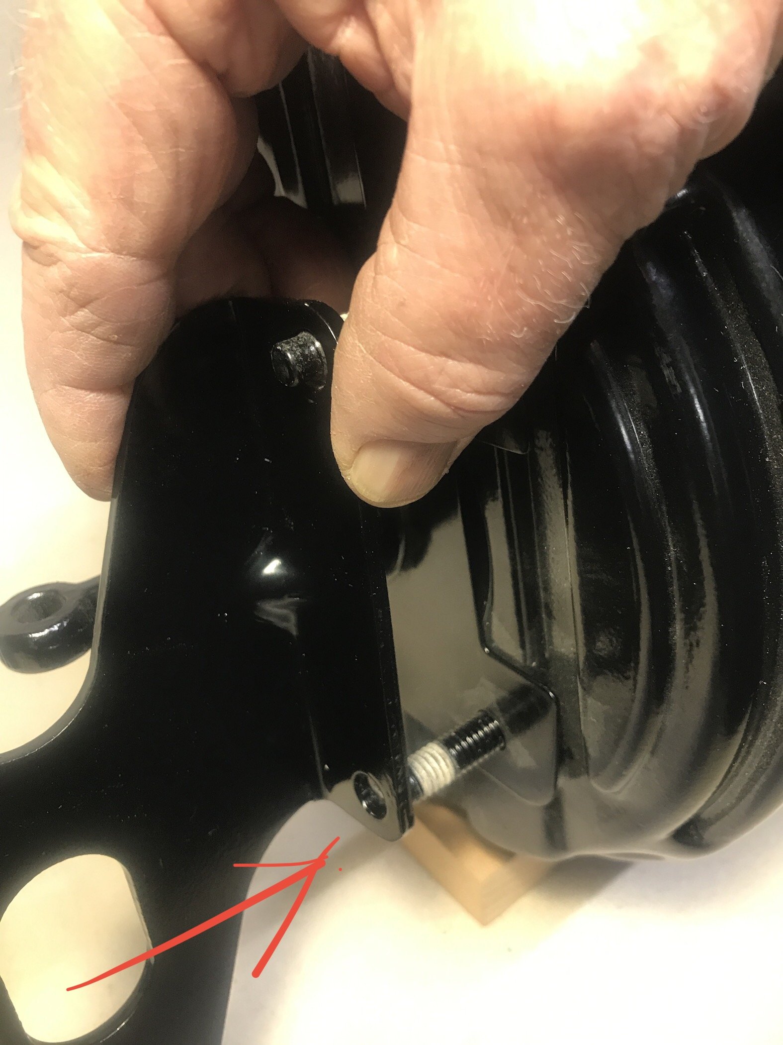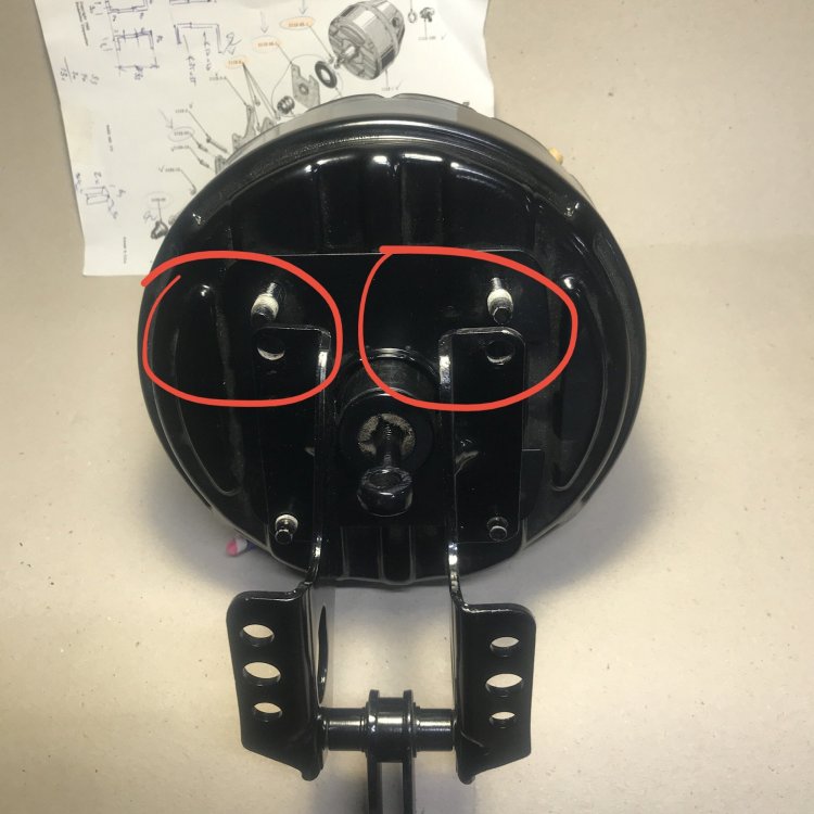 Hello Dwight, Some pictures of the engine-bay, wrong booster, bracket from SA, and mounted head brake cylinder from SI. Please note: booster and bracket are looking new, but are repainted. -